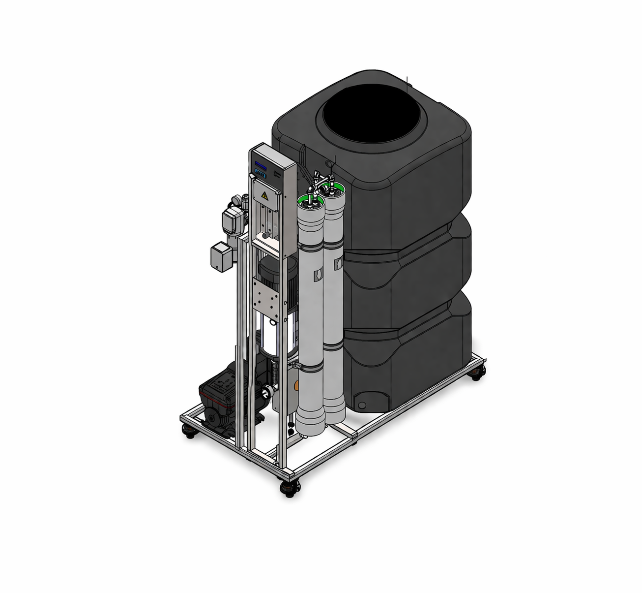 Osmosfilter Smart RO kommer levererad komplett med MO10000 osmosfilter, lagringstank 500 liter, förfilter i två steg och tryckstegringspump Grundfo SCALA 2 3-45 allt för att göra installationen så enkel som möjligt.