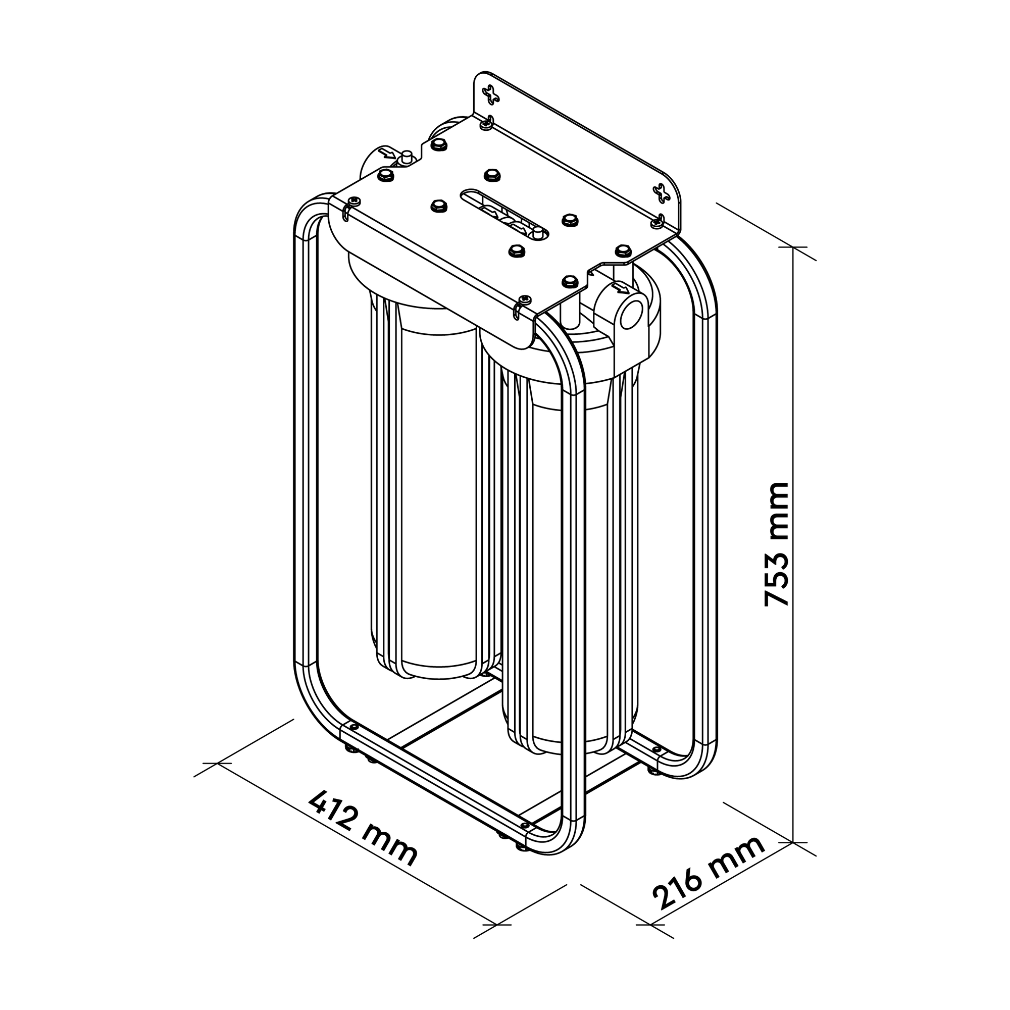Aquapoint standard monterat på metallställ är perfekt för sommarstugan/fritidshuset. Detta filter drivs utan el och avlopp. Denna produkt kan antingen stå på golvet eller monteras direkt på väggen. Du väljer själv vad ditt vatten ska renas från.